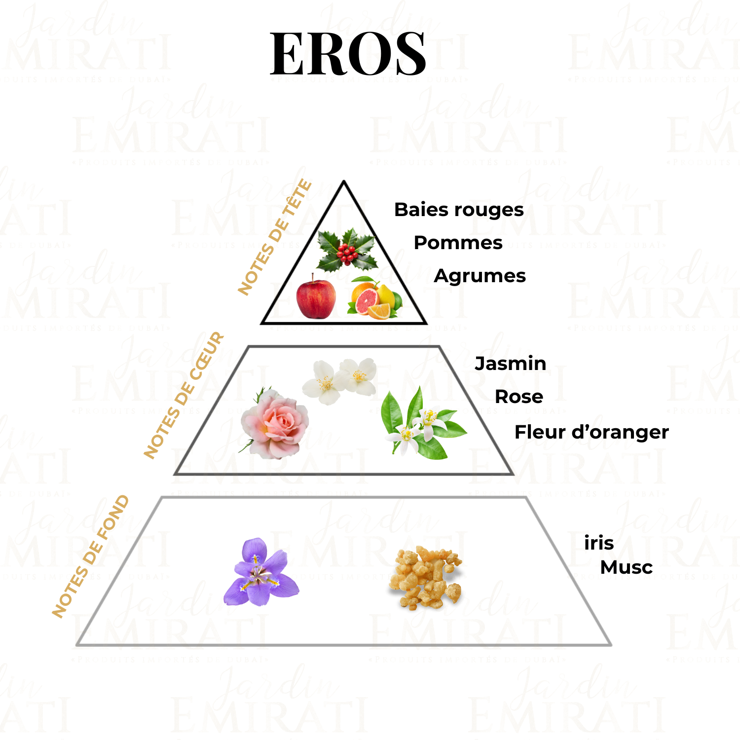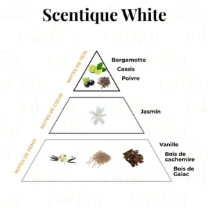 Un parfum fruité et floral, où la fraîcheur des baies rouges, pommes et agrumes s’harmonise avec un cœur délicat de jasmin, rose et fleur d’oranger, sur un fond doux et poudré d’iris et de musc. Une fragrance élégante et moderne, parfaite pour une signature olfactive subtile et raffinée.