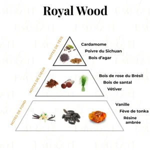 vanille, ambre, bois de santal, bois sec, vétiver, benjoin, labdanum